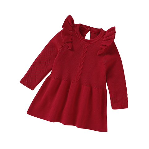Yeni varış mimixiong örme bebek elbise fırfır katı yenidoğan uzun kollu giyim bebek kız giysileri
