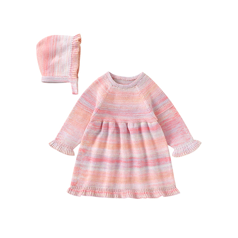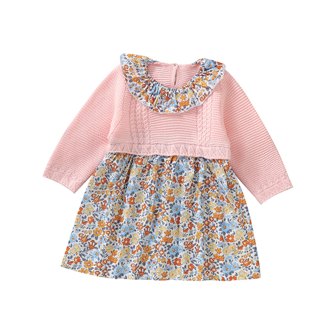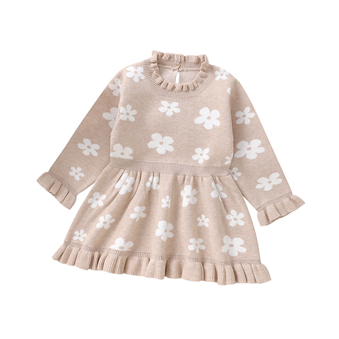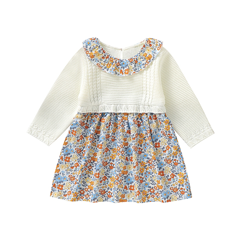 2024 toptan yüksek kalite 100% akrilik örme bebek elbise uzun kollu kız elbise